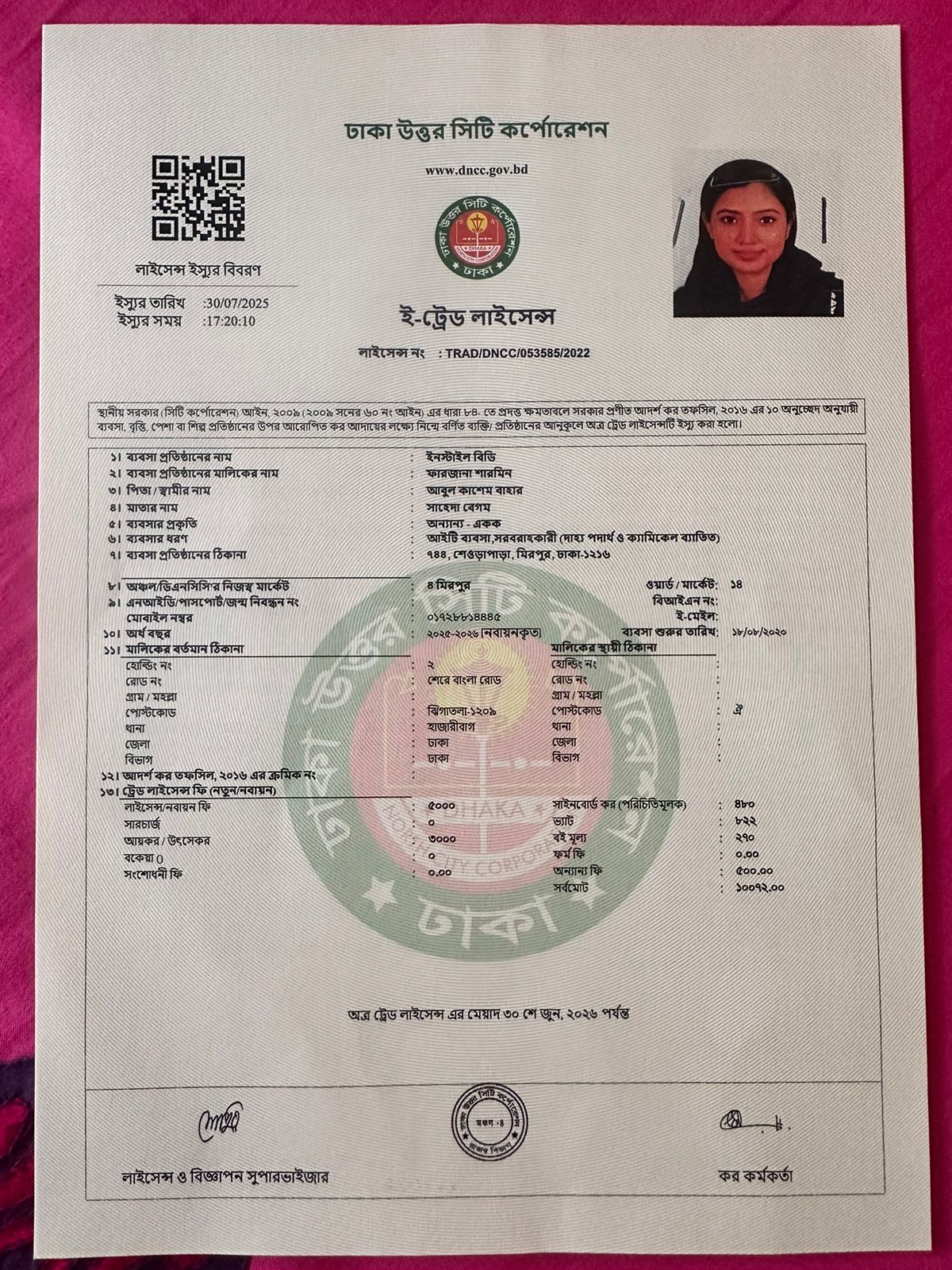 As per the Digital E-commerce Policy 2021 published by the Ministry of Commerce of Bangladesh, under Clause 3.1.12, the Trade License and Certificate of Incorporation are attached here.